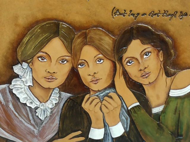 Représentation personnelle des sœurs Brontë, figures majeures de la littérature anglaise du XIXᵉ siècle. Charlotte, Emily et Anne, filles de pasteur élevées dans l’austérité des paysages du Yorkshire, ont marqué les années 1830–1840 par des œuvres devenues incontournables de la littérature britannique.