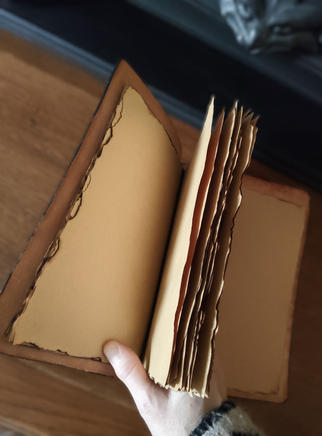 Il contient un carnet à dessin de 40 pages en papier kraft de qualité, aux bords découpés et noircis pour un effet vieilli.