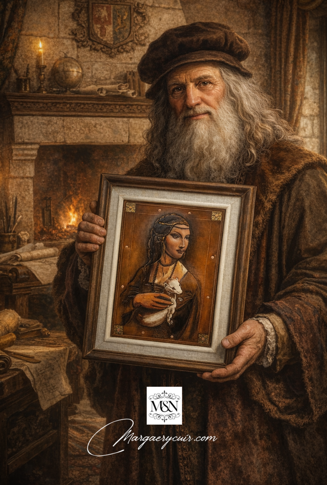 Une version "sans voile" de type Fantasy pour cette Dame à l'hermine en cuir repoussé inspirée par le tableau de Leonard de Vinci...