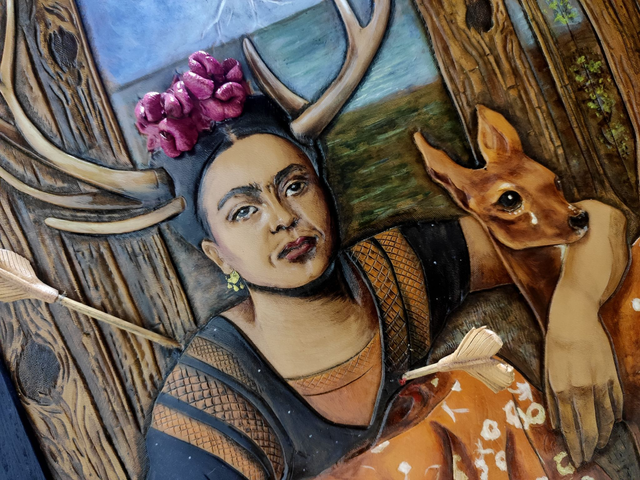 Frida Kahlo, Tableau hommage en cuir repoussé