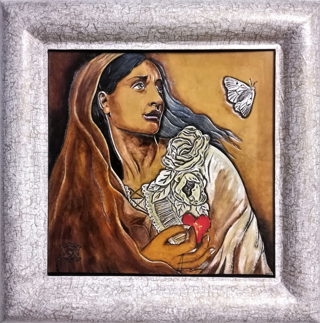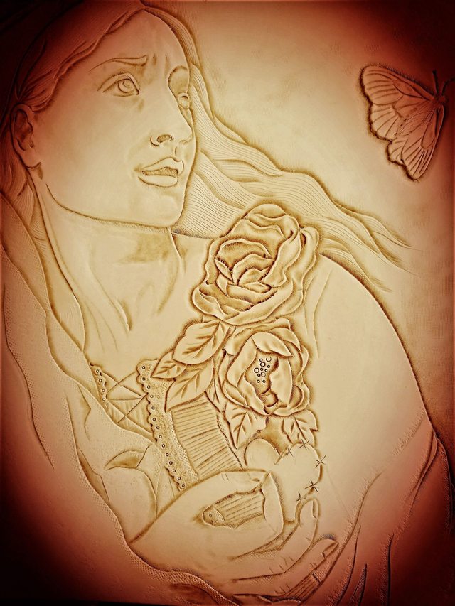 Tableau en cuir repoussé, Illustration personnelle du roman éponyme de Carole Martinez.