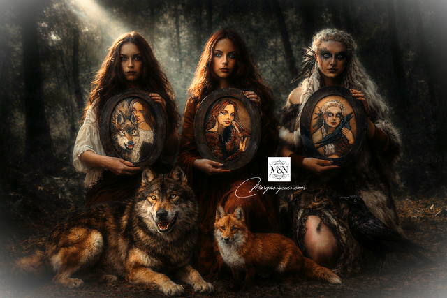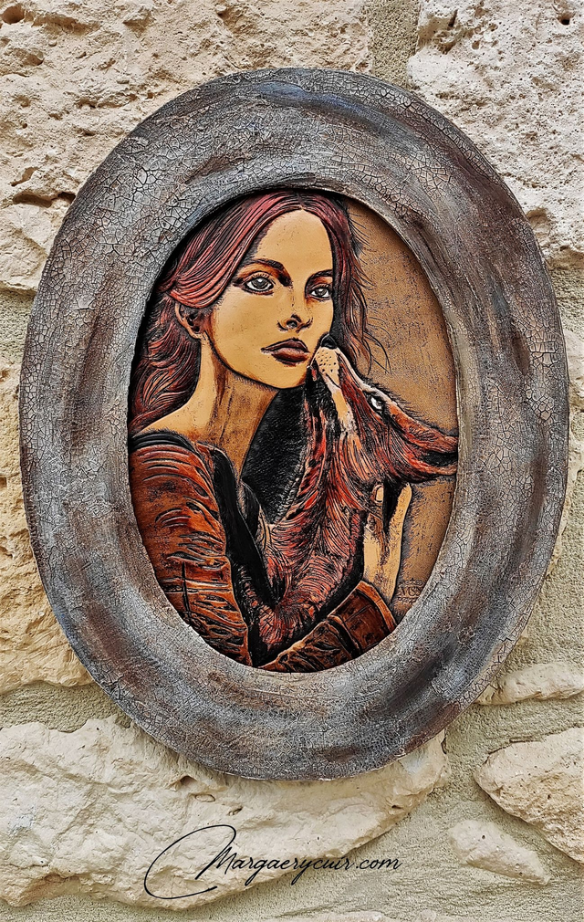 Série "Animal Totem", Portraits ovales encadrés...(dimensions totales 23,5X30cm environ).