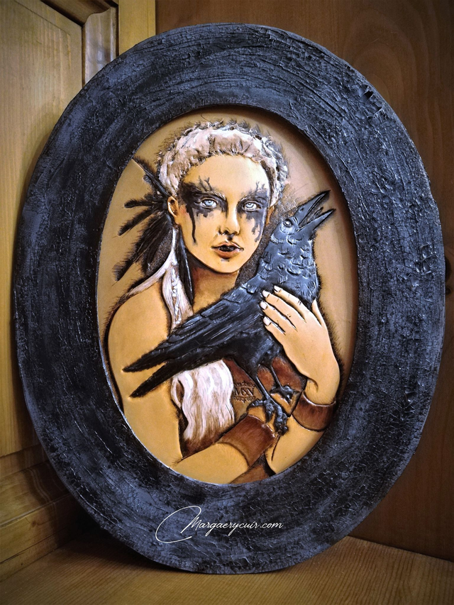 Tableau Animal totem, ovale en cuir, 3 motifs uniques